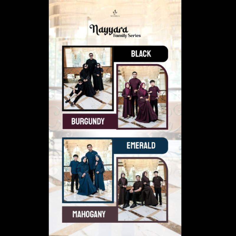 Bismillahirrahamannirrahim.. OPEN ORDER NAYYARA FAMILY SERIES BATCH 4 by MATHLA • 4 pilihan warna cantik ✨ BLACK ✨ BURGUNDY ✨ MAHOGANY ✨ EMERALD Spesifikasi: Nayyara Family Series menggunakan bahan Sabrina ( Lembut, jatuh, adem, nyaman digunakan) * Abaya menggunakan resleting besi premium tebal * ⁠Cutting lebih besar dari size standar karena abaya tapi tetep menyesuaikan tubuh masing-masing * ⁠Terdapat payet dan mutiara cantik di beberapa bagian Abaya * ⁠Lengan loose * Saku samping * ⁠Koko terdapat 2 pilihan, panjang dan pendek * ⁠Koko kerah chiangi * ⁠Terdapat tag metal logo Mathla dibagian dada untuk koko Pashmina menggunakan bahan yang sama yaitu bahan Sabrina Square menggunakan bahan Cerutty . . Notes : - Perbedaan size +-2cm karena cutting massal - ⁠Bisa jadi ada perbedaan warna 5% antara gamis atau koko tapi masih 1 tone, dikarenakan celupan kain dari pabrik Keterangan size, harga ada di foto ya Dear✨