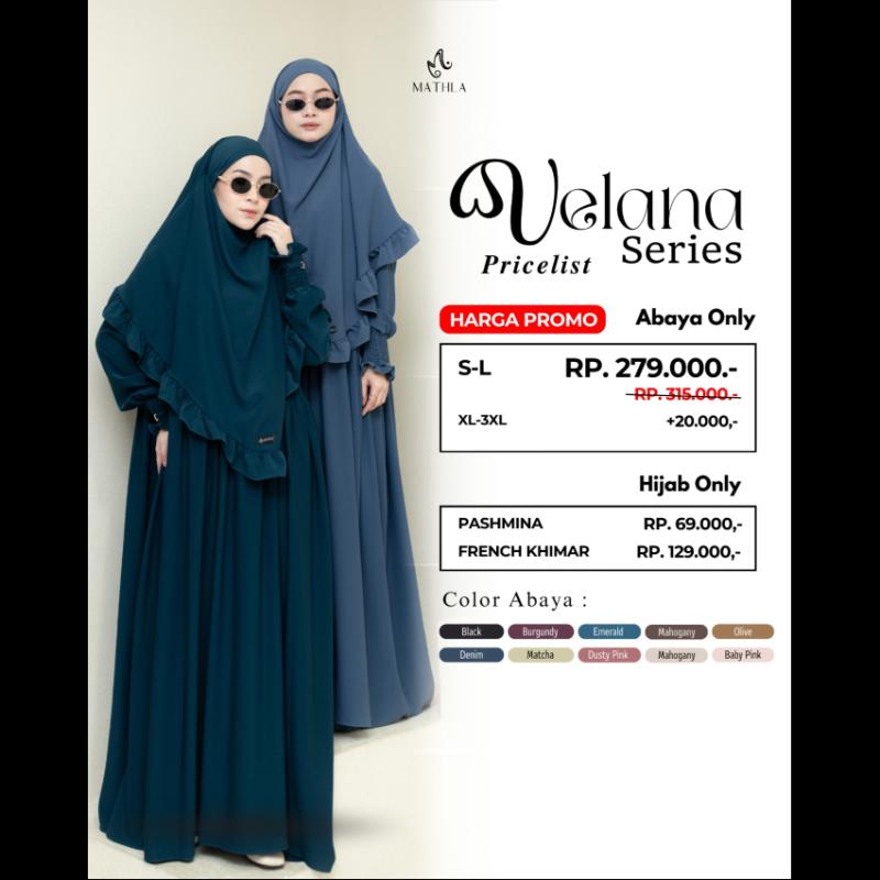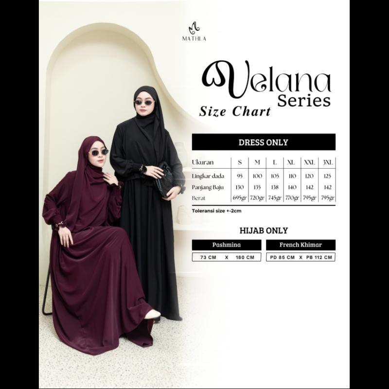 Bismillahirrahamannirrahim.. OPEN ORDER VELANA SERIES by MATHLA • 10 pilihan warna yang super cantik ✨ BEIGE ✨ MATCHA ✨ BURGUNDY ✨ BLACK ✨ DENIM ✨ EMERALD ✨ OLIVE ✨ MAHOGANY ✨ BABY PINK ✨ DUSTY PINK Spesifikasi: Velana Series menggunakan Marina Silk Anti UV, sejenis dengan Marbella silk (Kain Marina Silk menjadi pilihan utama bagi para pecinta fashion muslimah yang mengutamakan kualitas dan kenyamanan.) memiliki karakteristik sebagai berikut: * Lembut dan halus * Flowly dan classy * Lebih tebal dari silk * Ringan dan jatuh * Memiliki sifat stretch * Ultra soft -Resleting depan -Manset tangan karet ditambah variasi besi pada tagan -Pinggang serut -Rok lebar swing swing like a princess ^Pashmina & French Khimar menggunakan bahan yang sama. . . -Toleransi size -+2cm karena cutting masal. -Untuk warna bisa jadi ada sedikit perbedaan karena karena pencahayaan serta HP yang digunakan. Keterangan size, harga ada di foto ya Dear✨