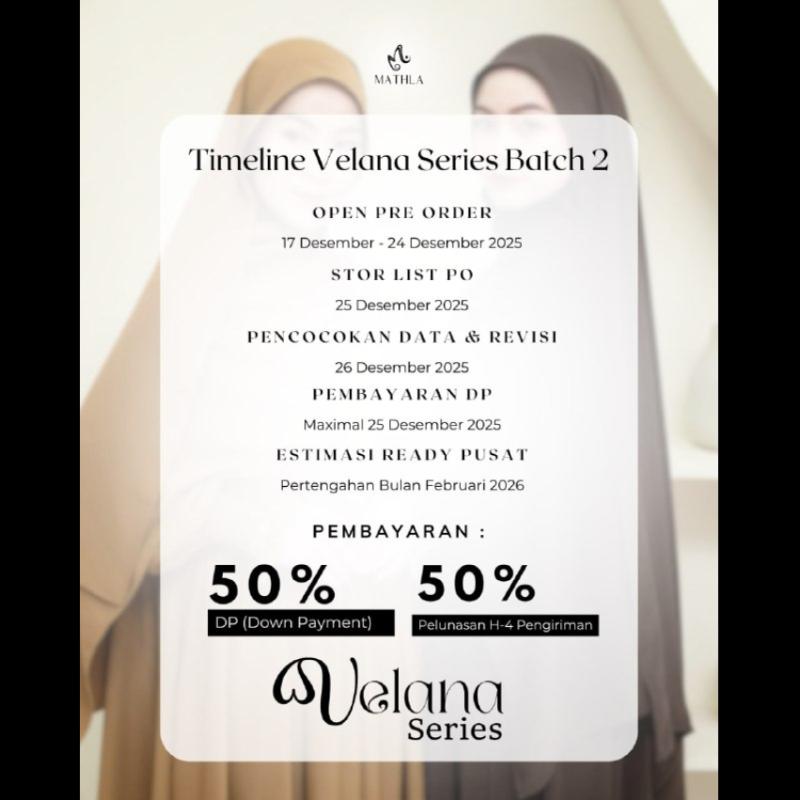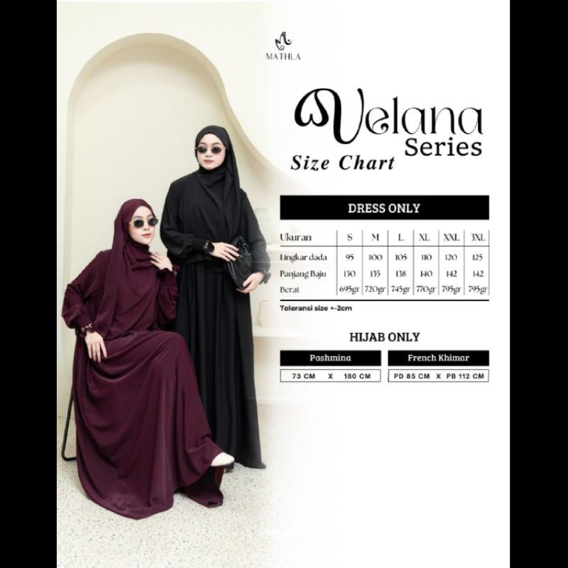 Bismillahirrahamannirrahim.. OPEN ORDER VELANA SERIES BATCH 2 by MATHLA • 10 pilihan warna yang super cantik ✨ BEIGE ✨ MATCHA ✨ BURGUNDY ✨ BLACK ✨ DENIM ✨ EMERALD ✨ OLIVE ✨ MAHOGANY ✨ BABY PINK ✨ DUSTY PINK Spesifikasi: Velana Series menggunakan Marina Silk Anti UV, sejenis dengan Marbella silk (Kain Marina Silk menjadi pilihan utama bagi para pecinta fashion muslimah yang mengutamakan kualitas dan kenyamanan.) memiliki karakteristik sebagai berikut: * Lembut dan halus * Flowly dan classy * Lebih tebal dari silk * Ringan dan jatuh * Memiliki sifat stretch * Ultra soft -Resleting depan -Manset tangan karet ditambah variasi besi pada tagan -Pinggang serut -Rok lebar swing swing like a princess ^Pashmina & French Khimar menggunakan bahan yang sama. . . -Toleransi size -+2cm karena cutting masal. -Untuk warna bisa jadi ada sedikit perbedaan karena karena pencahayaan serta HP yang digunakan. Keterangan size, harga ada di foto ya Dear✨